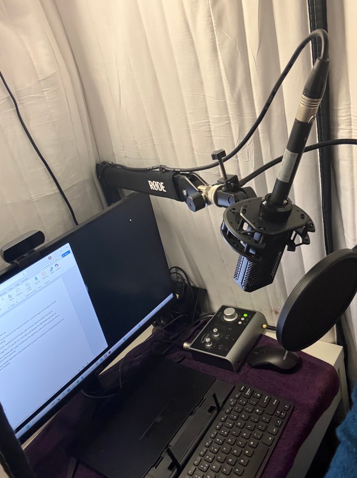 Welcome to my home studio in Maidstone, Kent, where I provide high-quality voice recordings in a comfortable and personal setting. My setup includes the Lewitt 440 large diaphragm condenser microphone and the Audient ID14 preamp, ensuring clear, professional-grade audio. I work within Sound Forge as my Digital Audio Workstation (DAW) to refine and deliver polished recordings.